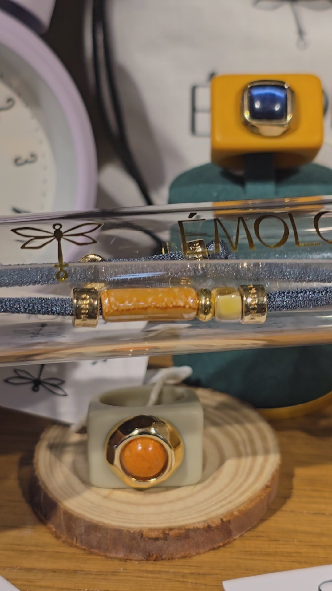 Handcrafted with elastic silk and semi-precious stones. Gold plated.