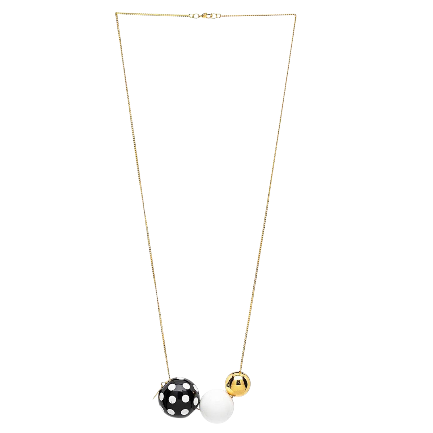 Pop Fancy long necklace with 2 resin spheres and anodized gold sphere protected with hypoallergenic treatment. Multi-colored and diamond-cut chain in matching color (White enamel/gold). Adjustable Lobster Clasp closure.