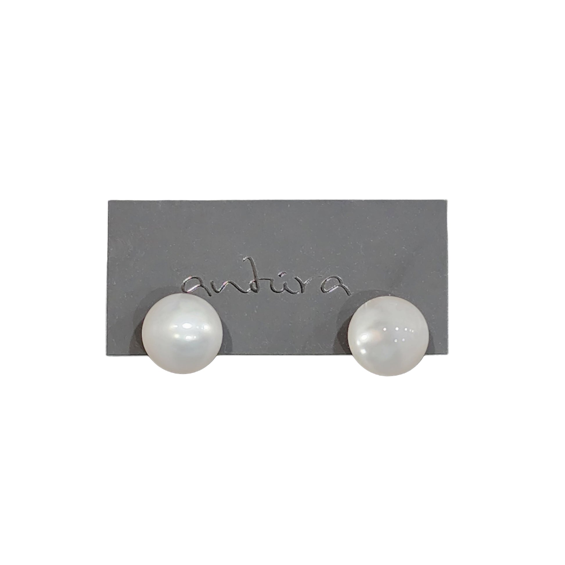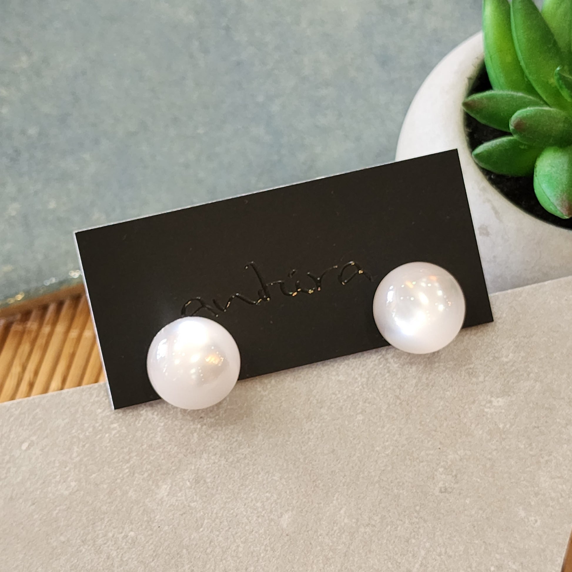 Mid-Size Pearly Sphere earrings. Galvanized Antura silver pin, protected with hypoallergenic treatment.