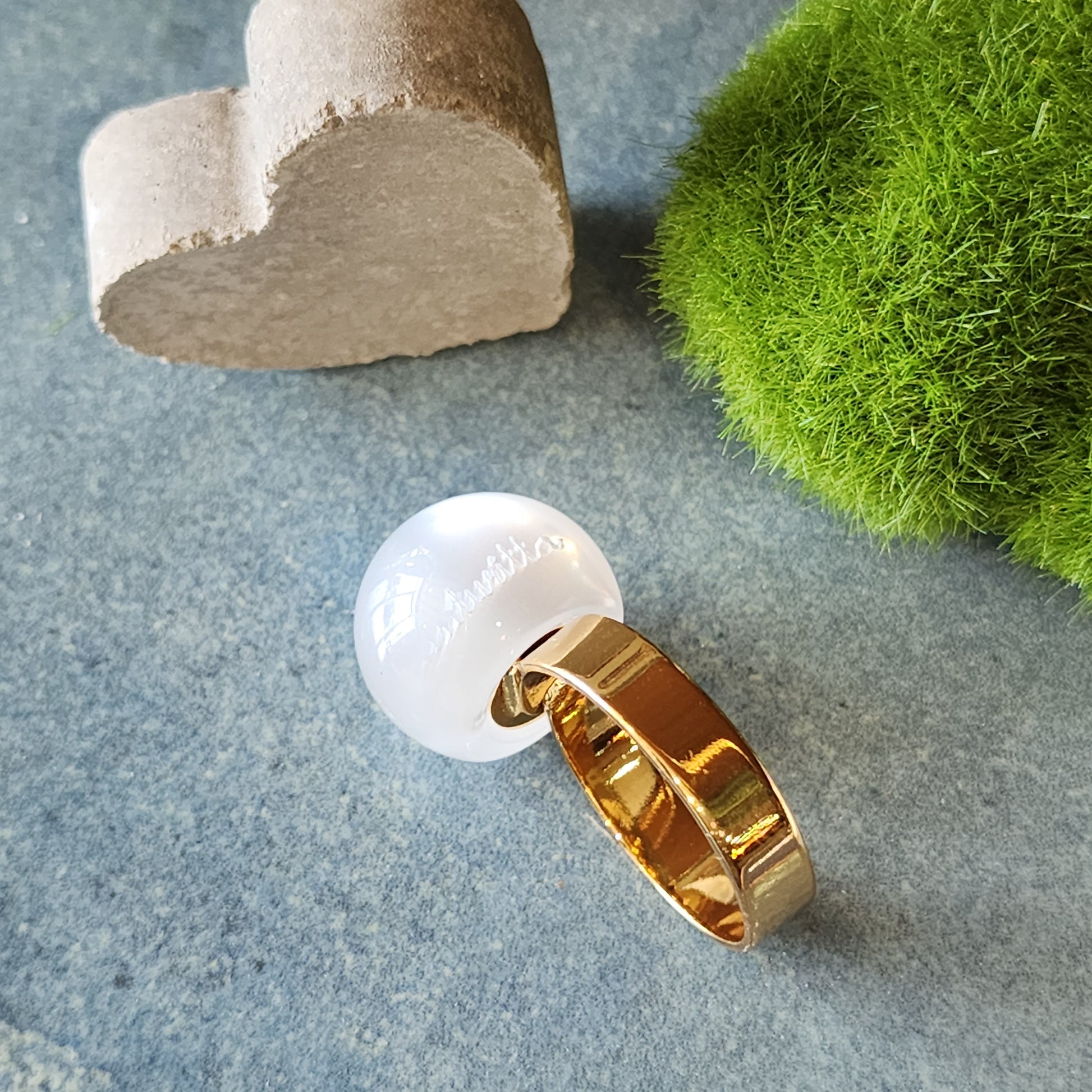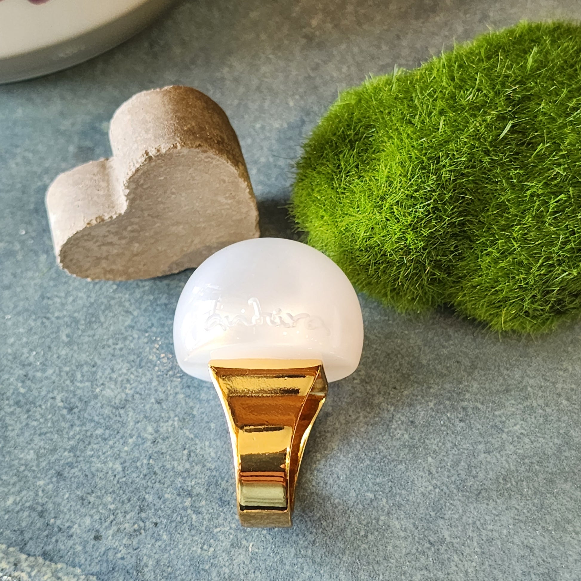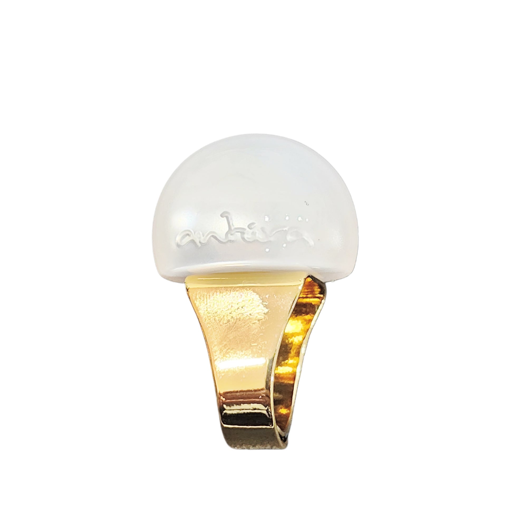 Antura Iconic Ring called Balloon. PEARLY Hemisphere on Adjustable Gold Plated Base.