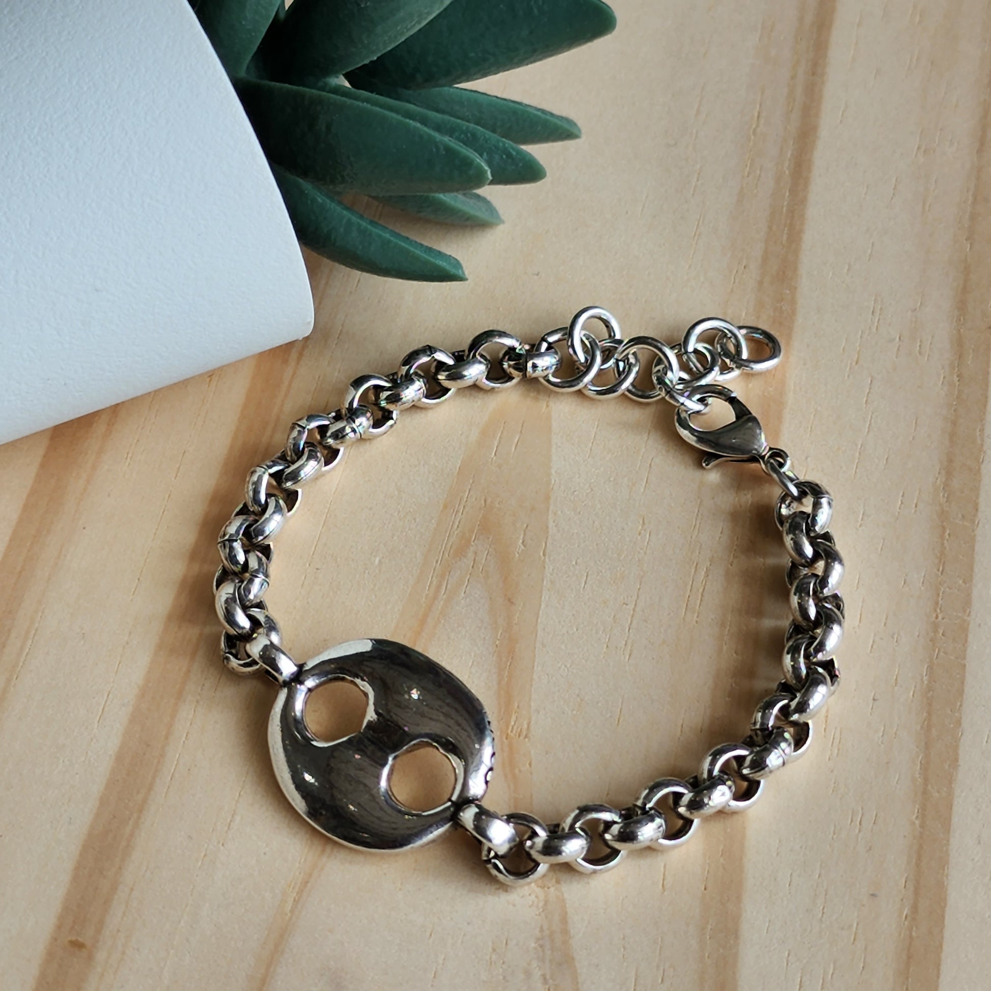 100% Handcrafted in Spain. Rolo chain with hawser accent piece. Silver plated.