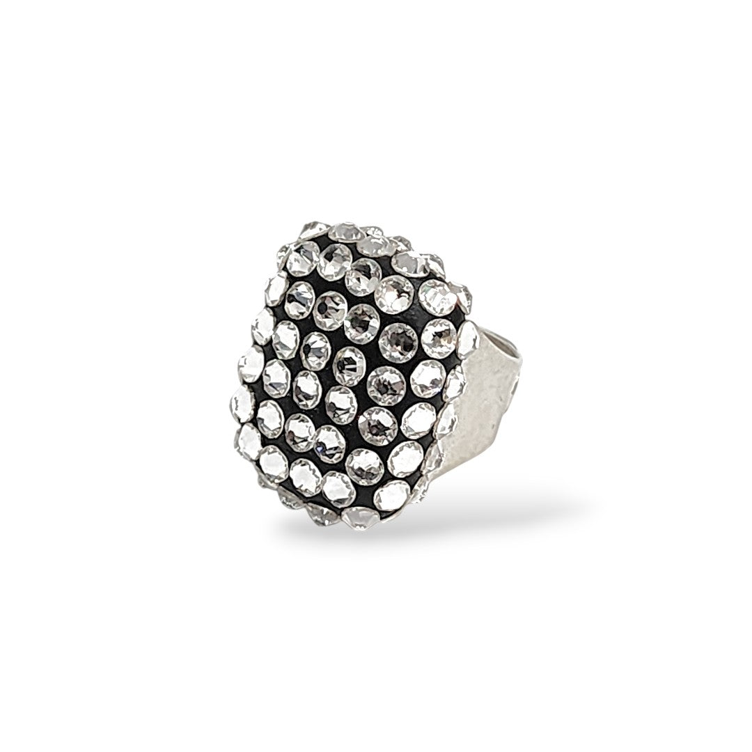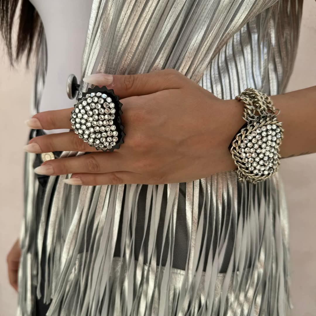 Multi-chain silver plated bracelet decorated with clear Swarovski crystals.