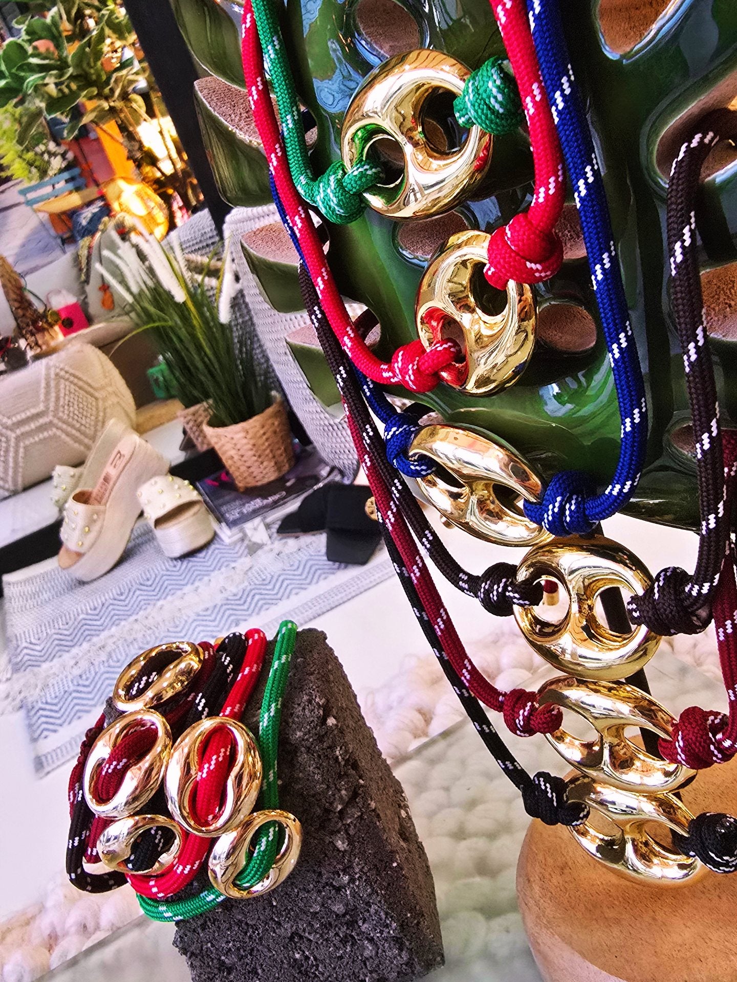 Hand-knotted on premium nautical rope and finished with radiant gold-plated 4cm Nautical chunky link center piece. Sleek, polished, and full of character.