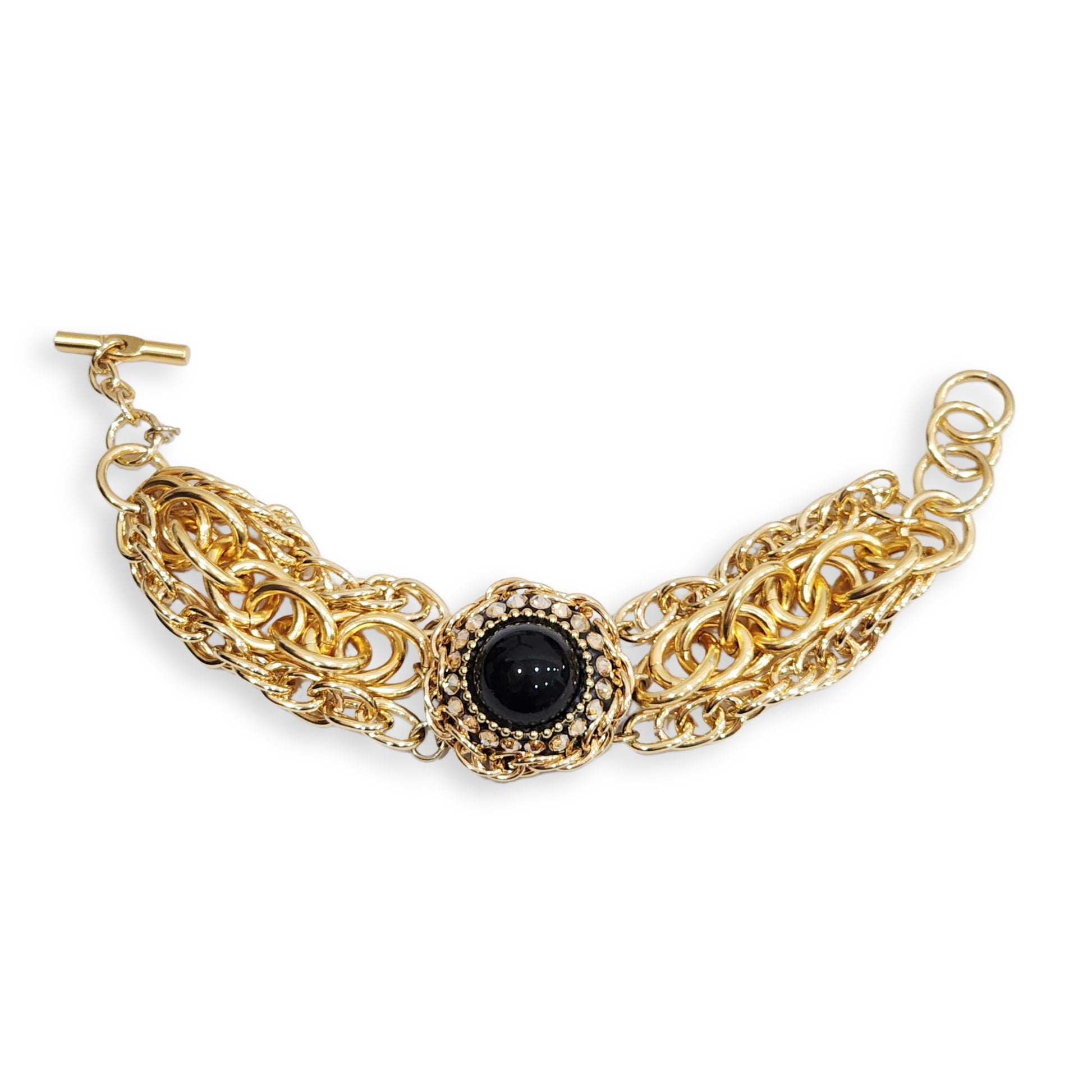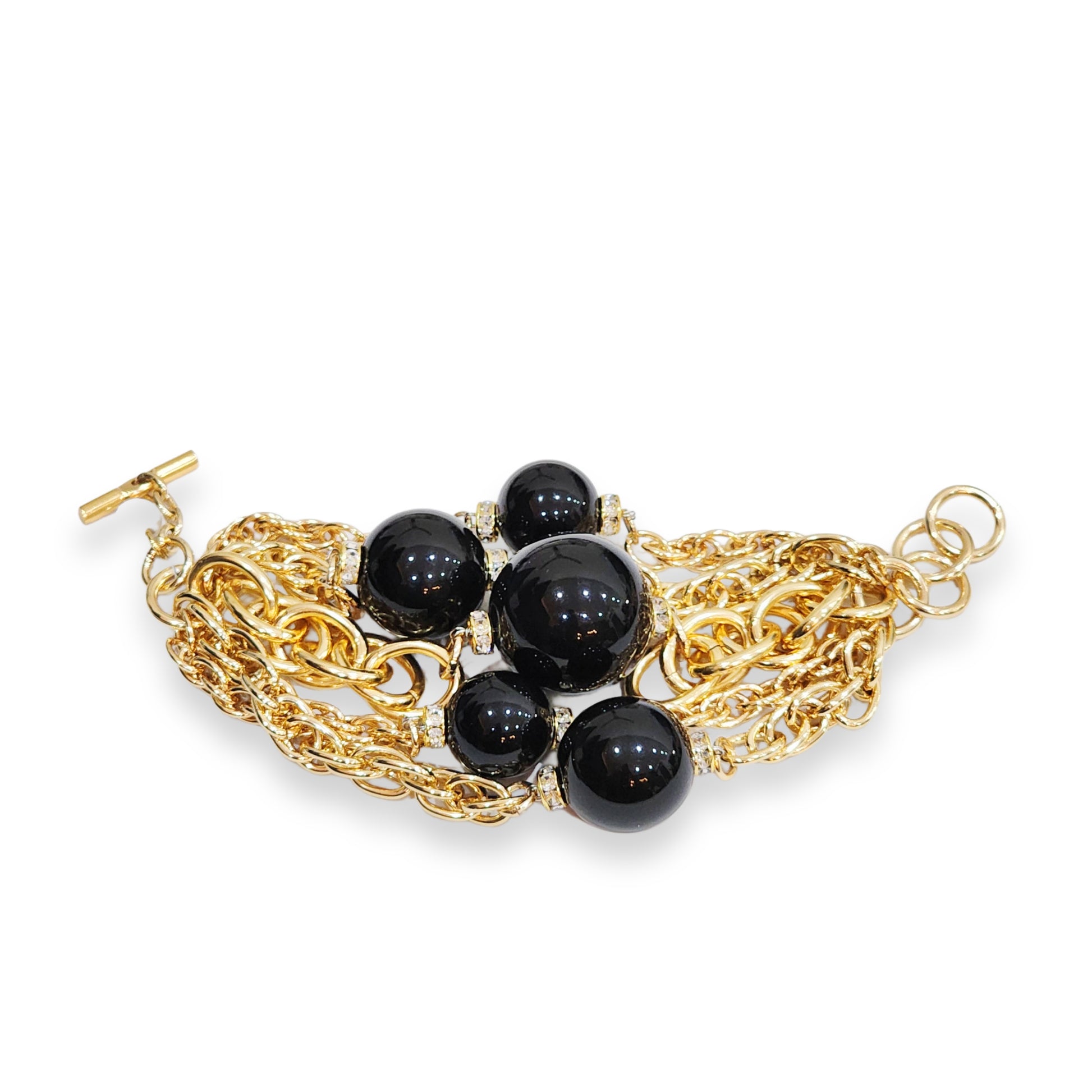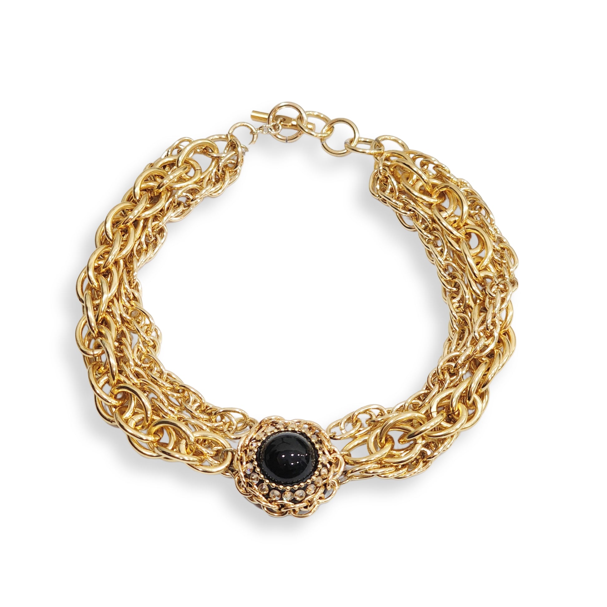 Gold plated multi-layer necklace and bracelet. Decorated with Swarovski crystals. Lightweight, made of aluminum.